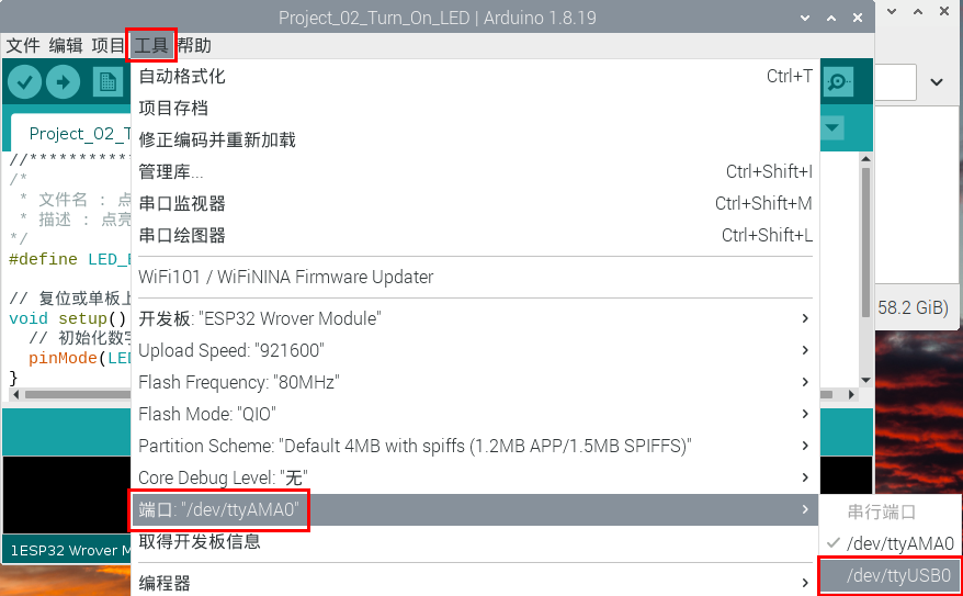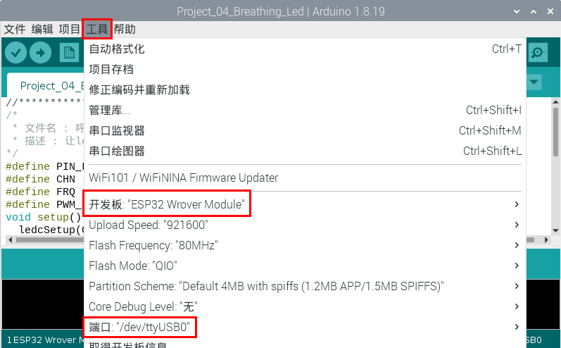 当手机发送“LED_on”时,ESP32的LED灯就会亮起.