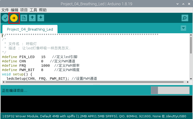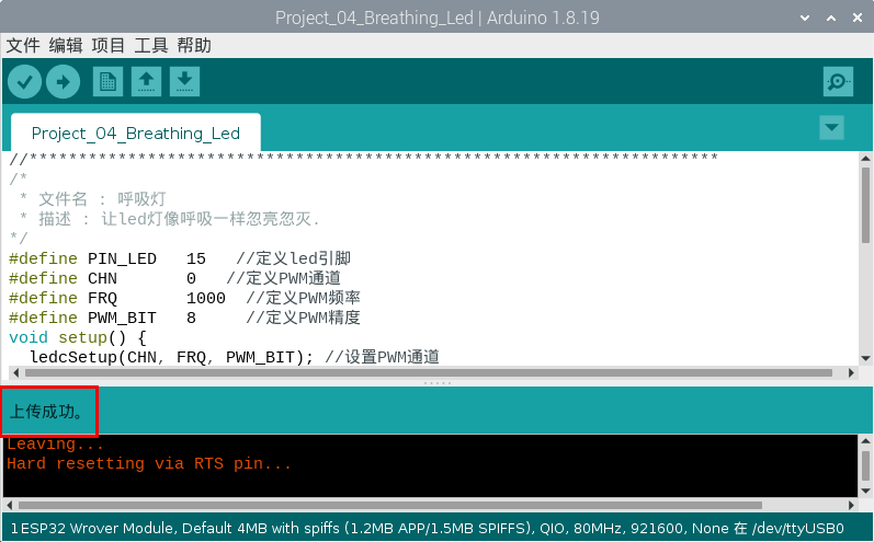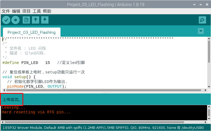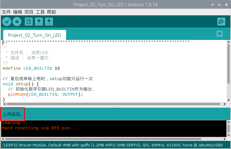 注意: 如果发送的内容不是 "led_on'或"led_off",那么LED的状态不会改变。如果LED是亮的,当接收到不相关内容时,LED继续亮;与之对应的是,如果LED是灭的,当接收到不相关内容时,LED继续熄灭。