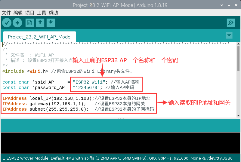 const char *ssid_AP = "ESP32_WiFi"; //输入AP名称