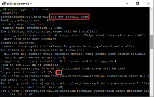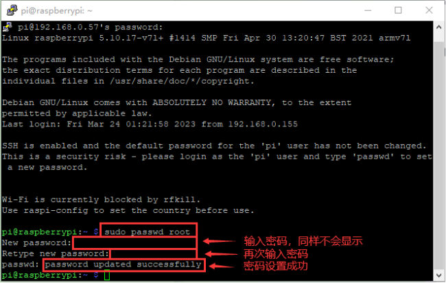 打开终端之后,还需要再次输入密码:"raspberry",注意:这里输入密码后不会显示,直接输入正确的密码然后按下“Enter”键。