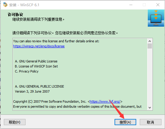 后,鼠标左键双击WinSCP软件文件,再左键单击选择安装模式。