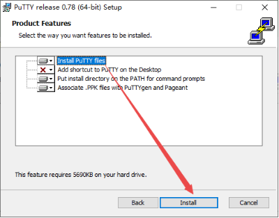 ⑤ 选中“Install Putty files”,点击“Install”,等待安装。
