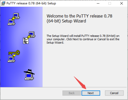 完成后,鼠标左键双击putty驱动文件,再点击“Next”。