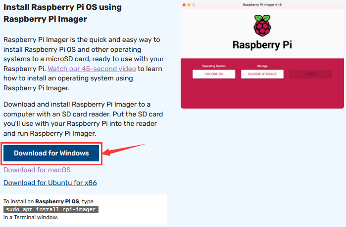 下载安装树莓派imager工具的链接:https://www.raspberrypi.com/software/