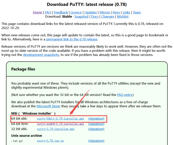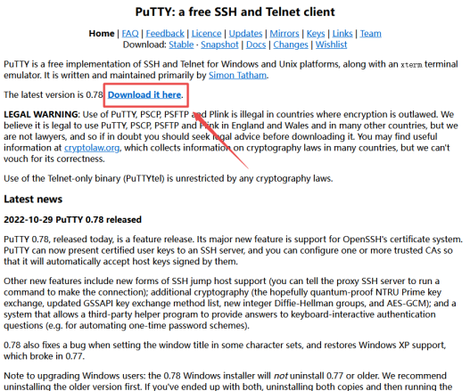 下载链接:https://www.chiark.greenend.org.uk/~sgtatham/putty/